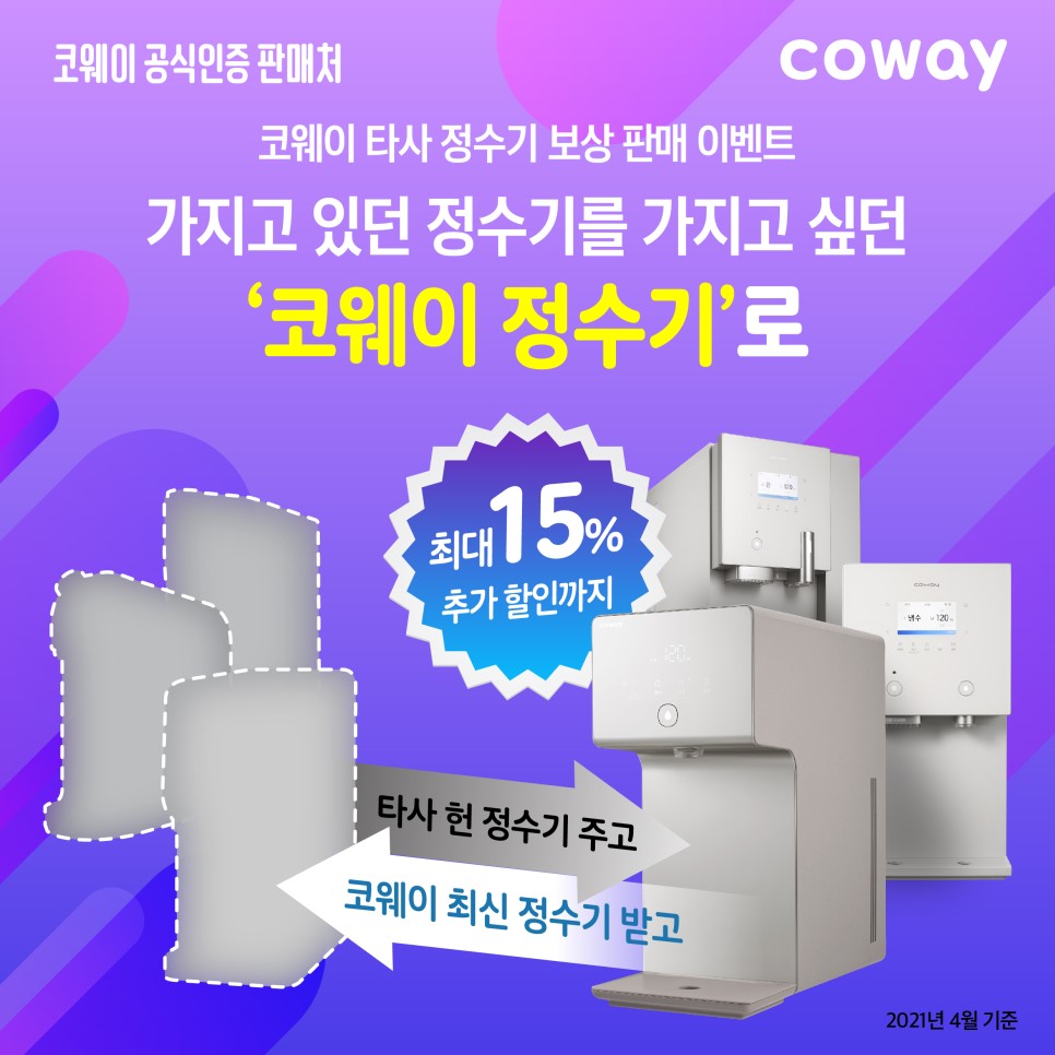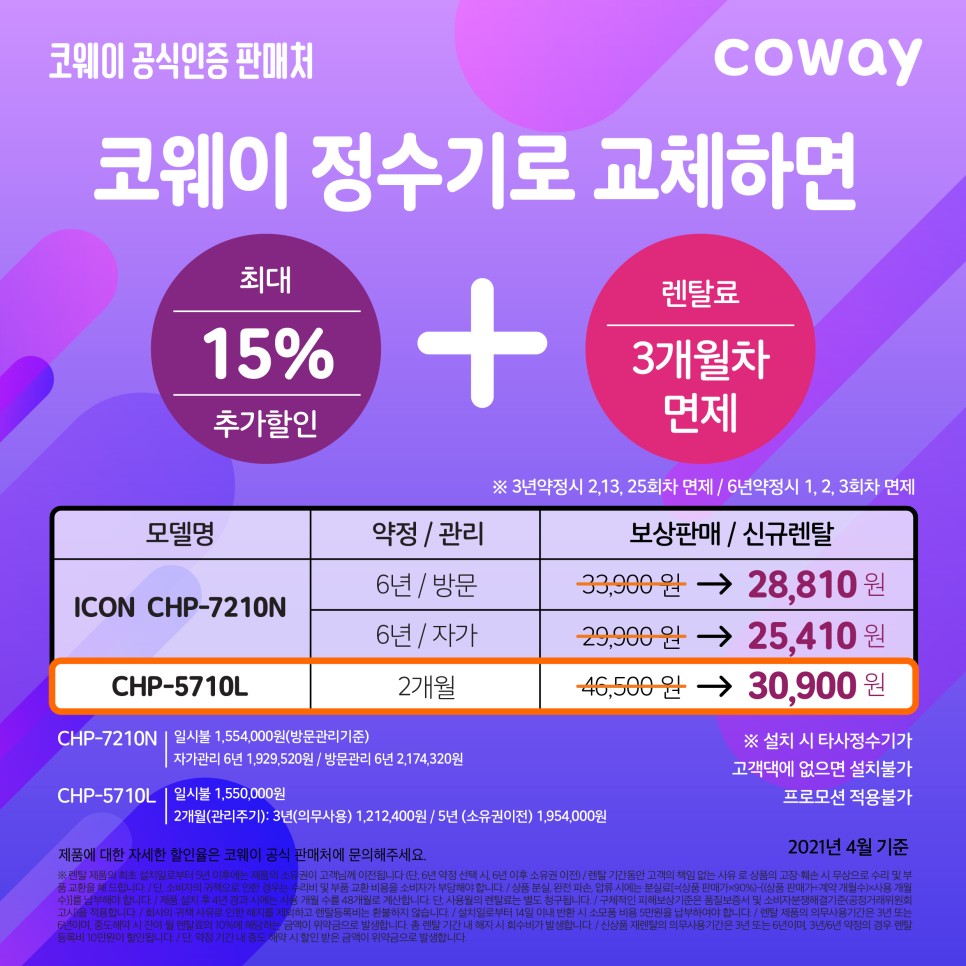 타사제품 쓰실때 할인된렌탈료+3개월 렌탈료 면제