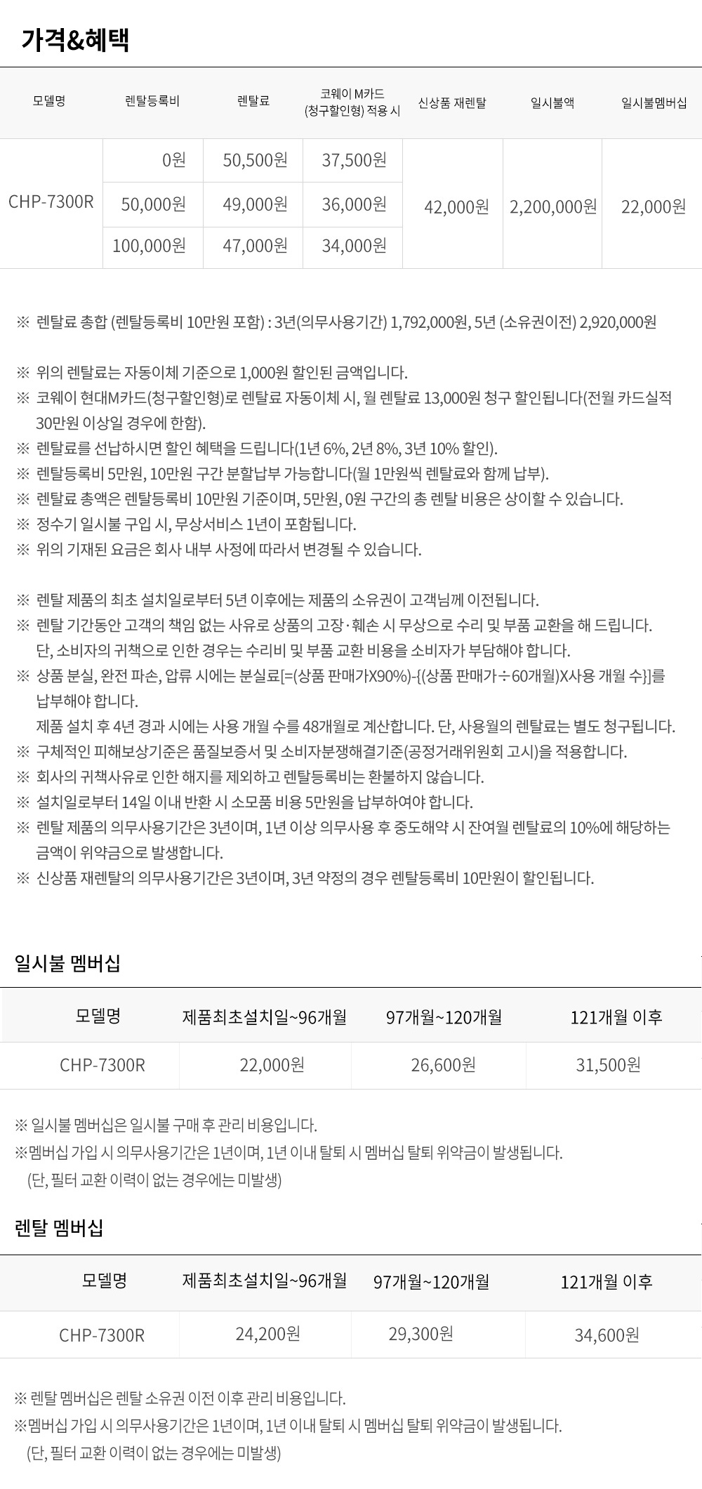 · 14일내 매변시(제품변경) 혜택 및 렌탈료 변동될수 있습니다.